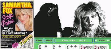The beginnings of computer strip poker were modest due to the limited capabilities of personal computers at the time. Until the 1990s, computer versions of strip poker offered either photos of models or video footage in small windows, where barely visible models undressed with little connection to the current situation in the game.